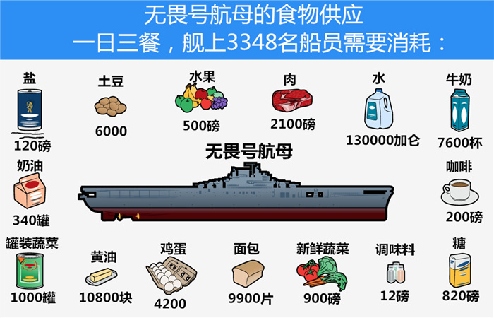 2、食物消耗:航母上艦員的日常食物供應(yīng),包括主食、副食、飲用水等,每天都需要一定的費(fèi)用。
